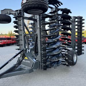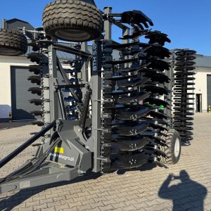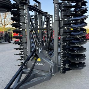 - dwa rzędy talerzy 5-otworowych Ø560 mm OFAS/AMA - amortyzatory trójkątne 50 mm - piasta bezobsługowa premium na 5 śrub - ekrany boczne pływające - wał rurowy, strunowy lub strunowy zębaty Ø 500 mm- zwiększony prześwit między talerzem a ramą o 12 cm, dzięki wydłużonej nodze talerza- rozstaw między rzędami talerzy 100 cm- powiększona przestrzeń do wału uprawowego- talerze zamontowane na profilu 90mm x 90mm- mechaniczna blokada skrzydeł- malowanie proszkowe