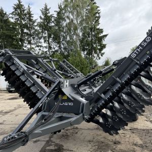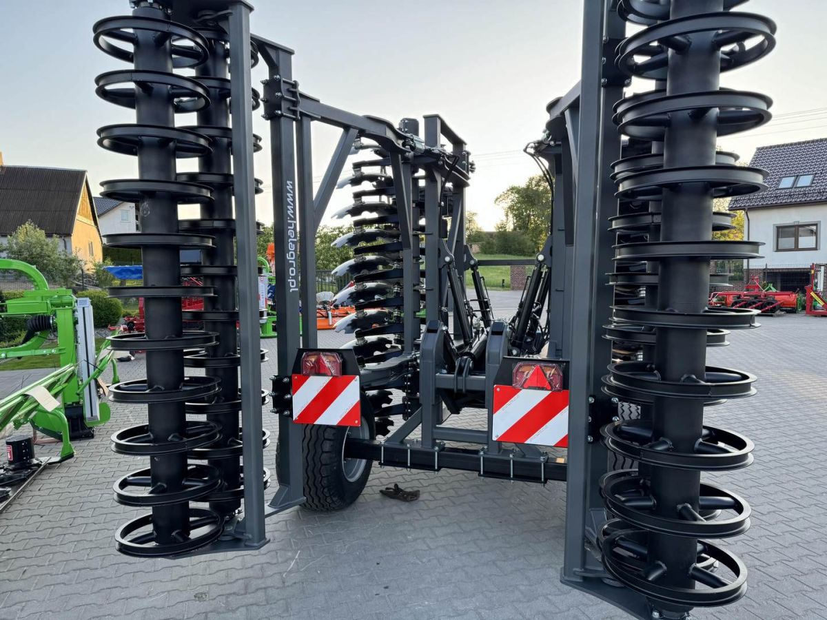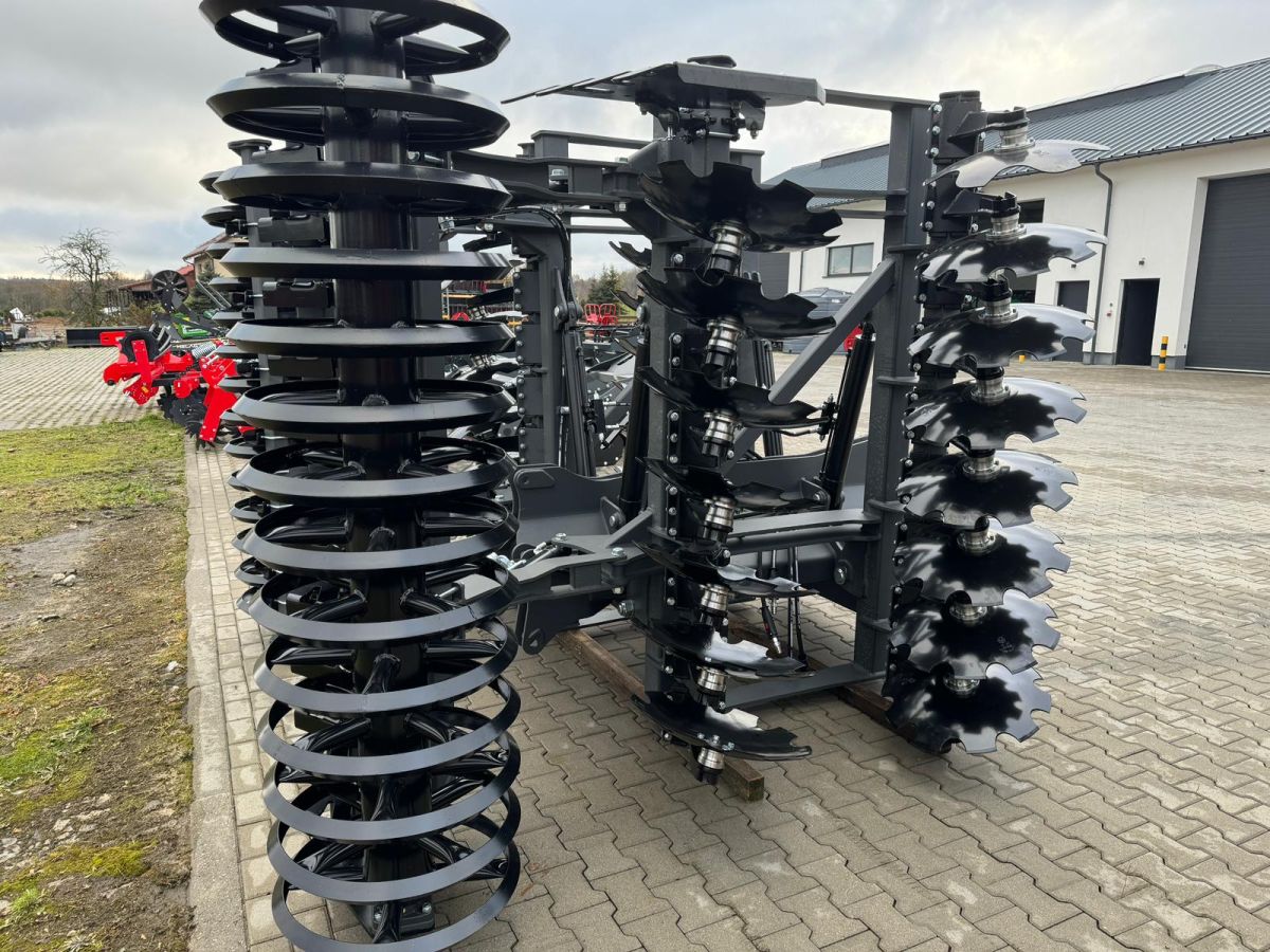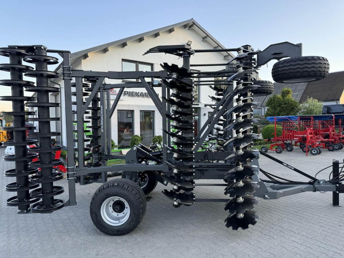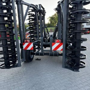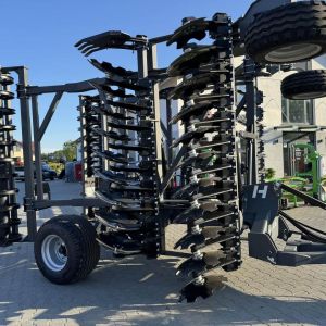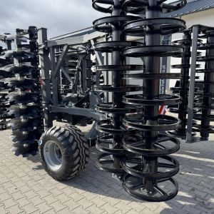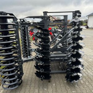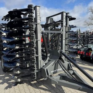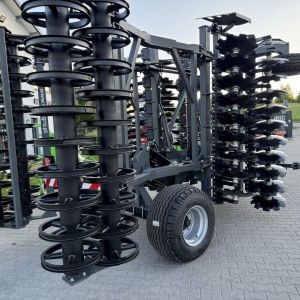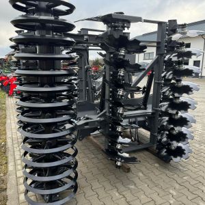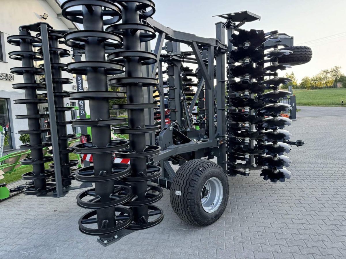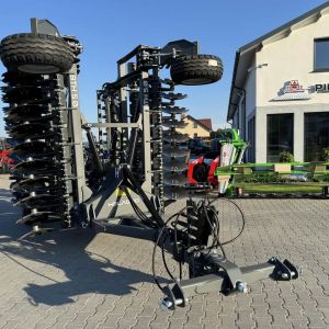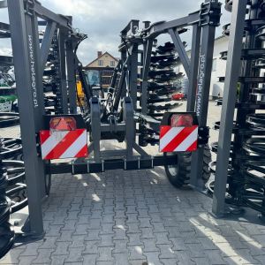 Wyposażenie dodatkowe:- talerz 5-otworowy Ø 610 mm OFAS/AMA - rząd zgrzebeł przed/za wałem - hydrauliczna regulacja wału - wózek między talerzami a wałem - koła o szerokości 500mm - mocowanie siewnika poplonu- hamulec pneumatyczny- Mocowanie pod siewnik poplonu do bron półzawieszanych z wózkiem- koła podporowe- oświetlenie LED