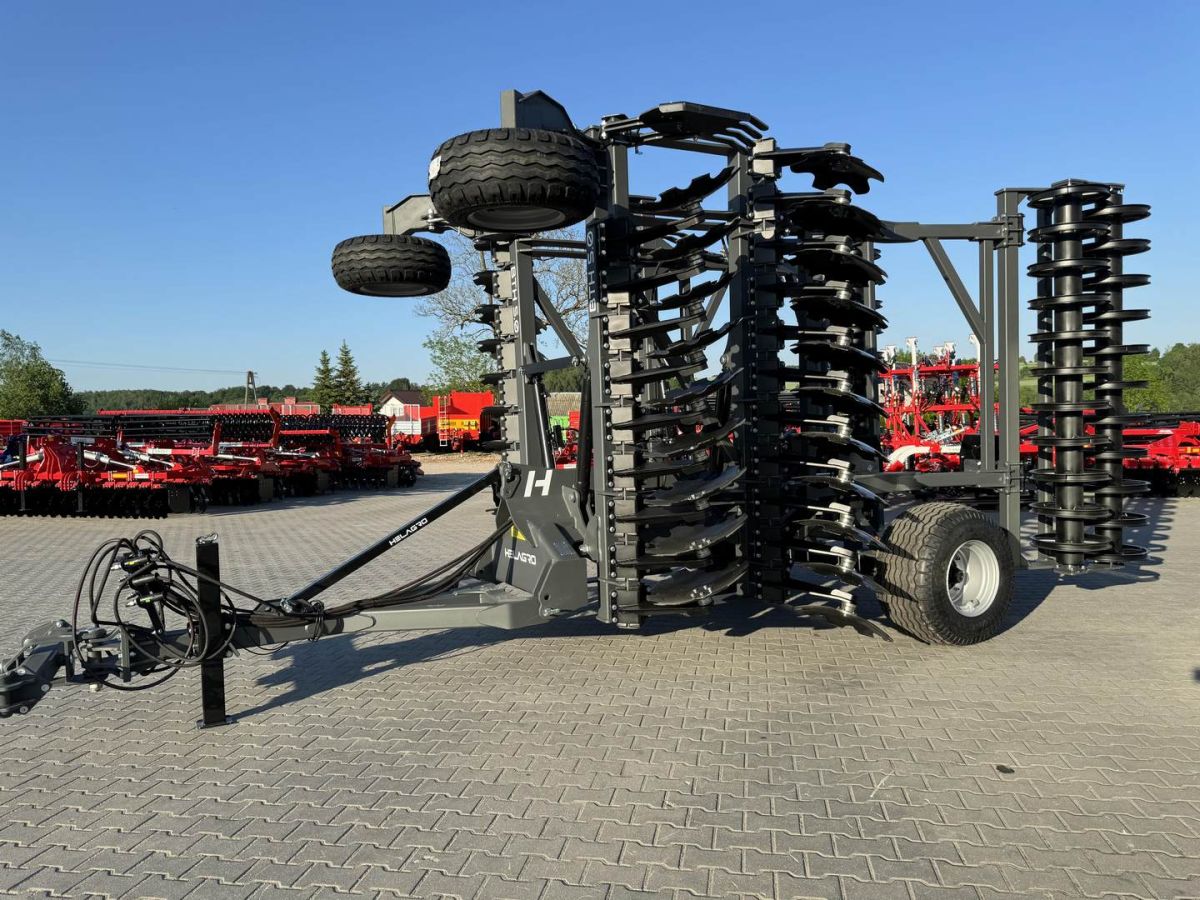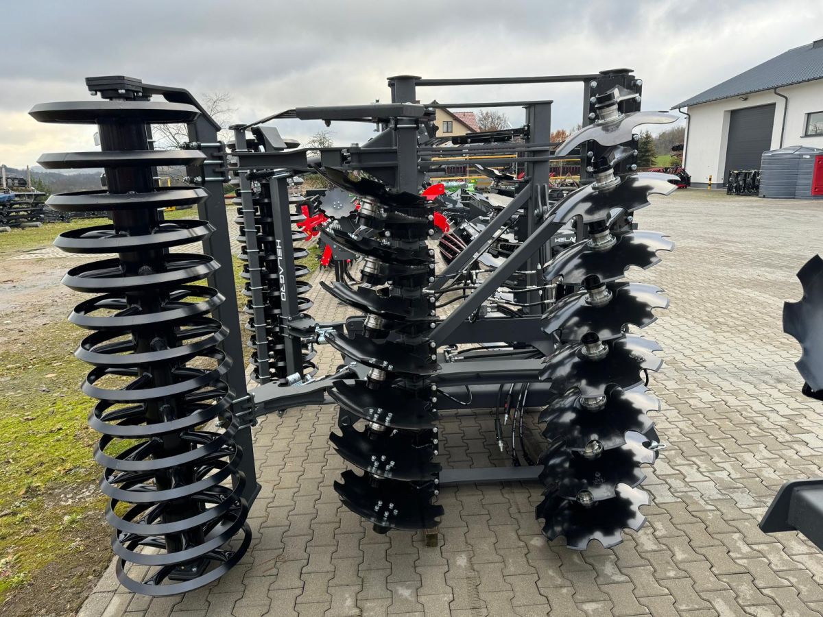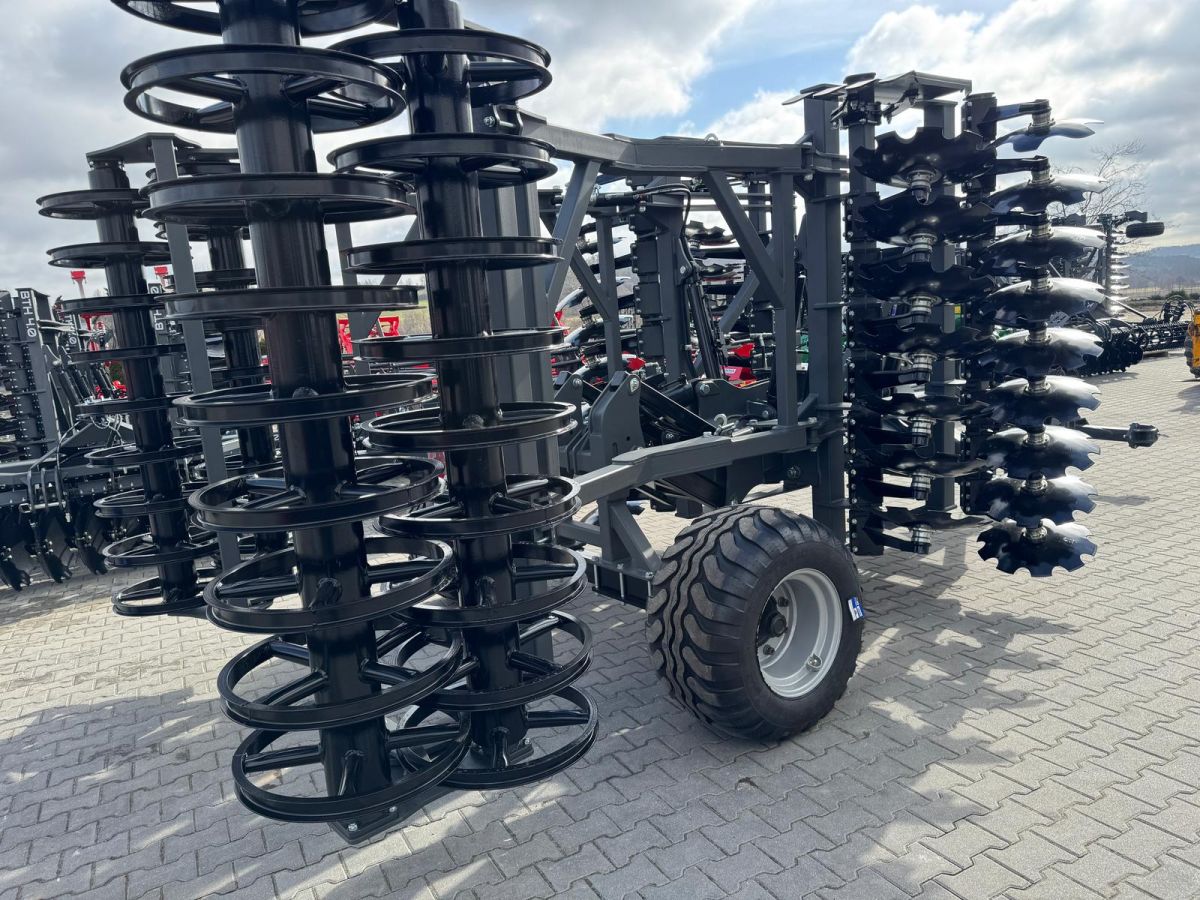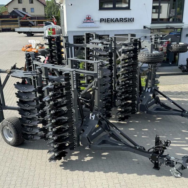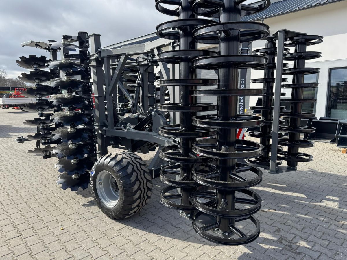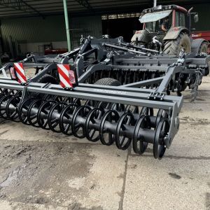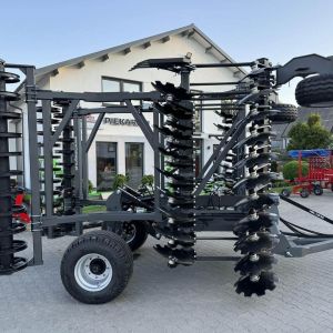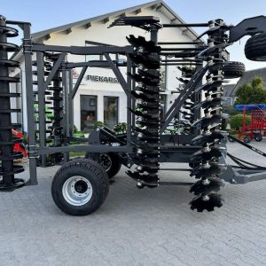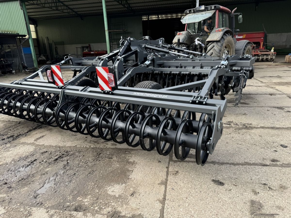 Wyposażenie dodatkowe:- talerz 5-otworowy Ø 610 mm OFAS/AMA - rząd zgrzebeł przed/za wałem - hydrauliczna regulacja wału - wózek między talerzami a wałem - koła o szerokości 500mm - mocowanie siewnika poplonu- hamulec pneumatyczny- Mocowanie pod siewnik poplonu do bron półzawieszanych z wózkiem- koła podporowe- oświetlenie LED